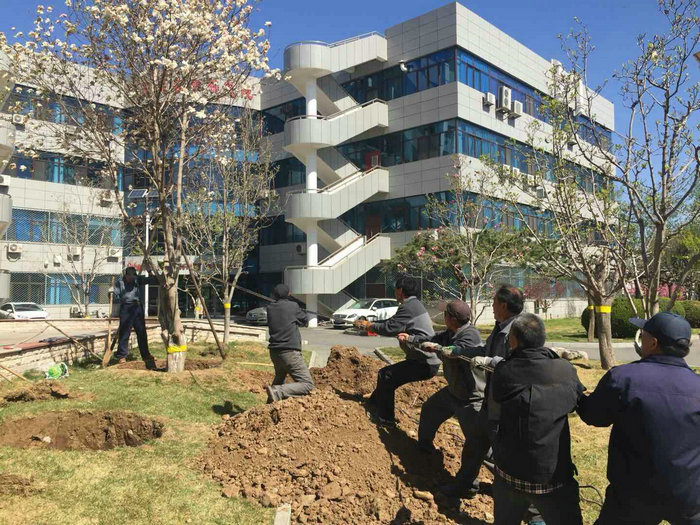 为了配合东校园施工改造,统筹各校园树木资源,4月10日至11日,绿化员工将东校园食堂周边的三棵玉兰树移栽至北校园玉兰园,并对枯死的玉兰树进行了处理。
