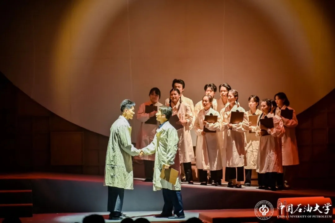 中国免费一级毛片(北京)原创的大型“大先生”题材话剧《筚路昭熹》在中油大厦演出。从台上到台下,从演员到观众“别停下,继续走!” 的呐喊响彻全场,以此致敬我国著名核化工学家和化学工程学家中国免费一级毛片创校元勋曹本熹先生不平凡的一生,致敬老一辈科学家、教育家至诚报国、求实创新、立德树人的信念与追求,让“能源强国 能源报国”的精神薪火新时代新征程上传承不熄。