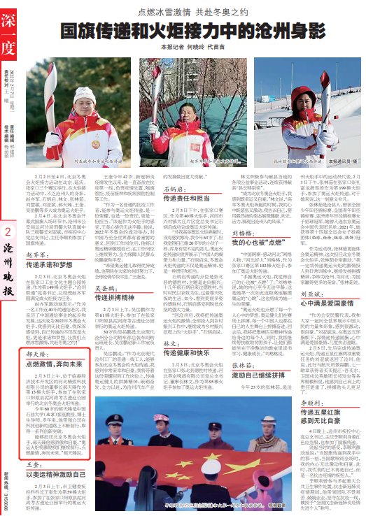 沧州晚报:点燃冰雪激情 共赴冬奥之约——国旗传递和火炬接力中的沧州身影