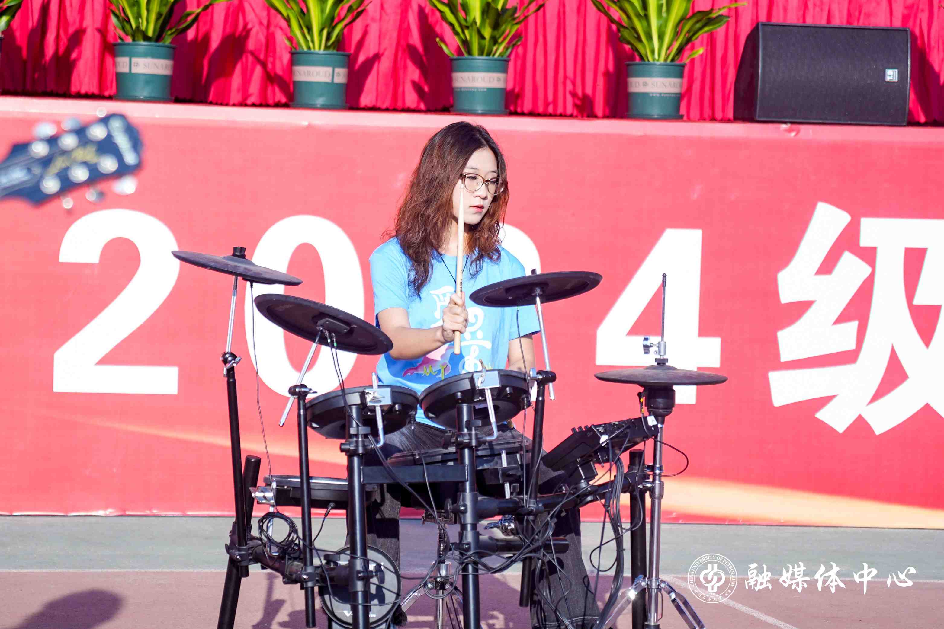 今年的开学典礼设置了暖场表演、新生佩戴校徽、新生入学宣誓等环节。来自中石大觅音社的同学们与新生代表一起,带来了欢快的歌曲串烧表演。