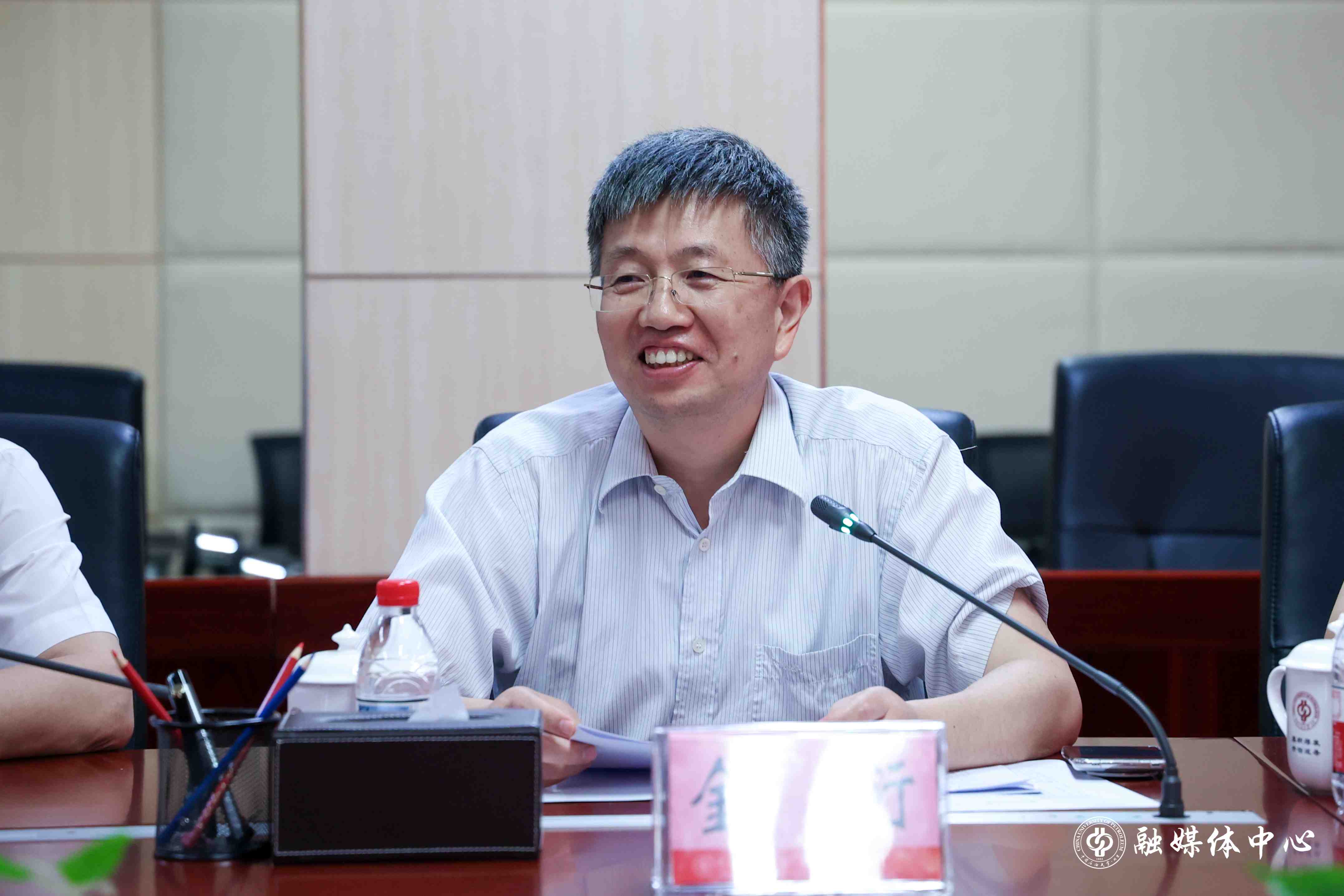 王同奇、金衍对霍庆生一行来校交流表示欢迎。他们表示,中石大与辽宁石油化工大学同为能源高校,关系密切、情谊深厚,两校以辽宁石油化工大学建校75周年为契机,签订全面战略合作协议,为两校深化合作提供了遵循,希望双方进一步围绕教育强国战略部署,以国家能源重大战略需求为导向,深化落实全面战略合作协议内容,在学科建设、人才培养、科学研究等方面通力协作,支撑双方能源领域重要人才中心和创新高地建设,整体推进油气领域教育、科技、人才一体化发展。