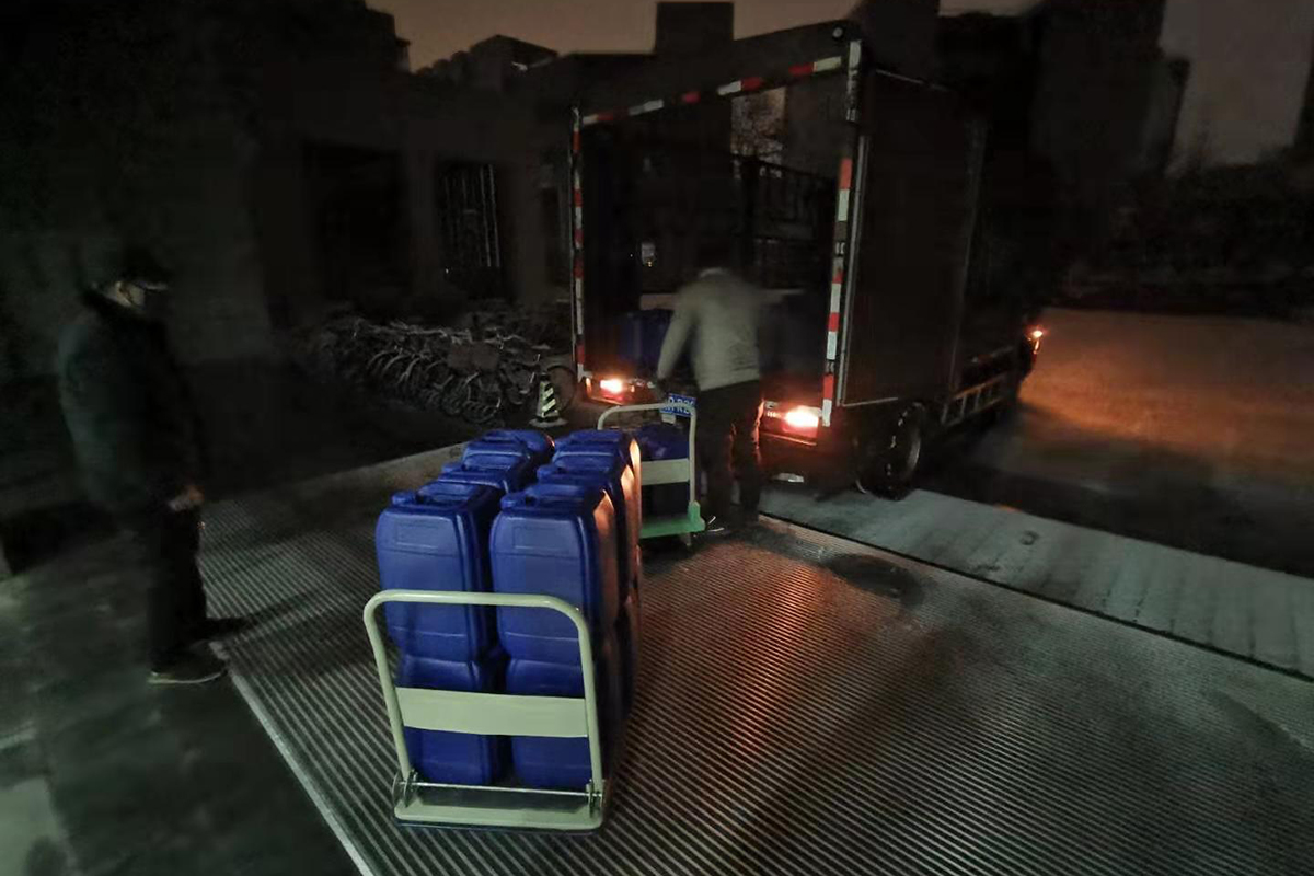 3点30分,一辆载有0.5吨医用消毒液原液的货车驶入中国免费一级毛片,送来了2012级石油工程专业校友赵辰一份沉甸甸的心意。