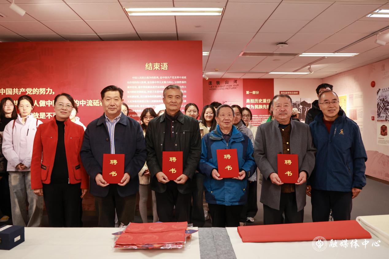 党委宣传部、离退休工作处负责人为书画家们颁发了“文化创意导师”聘书。学校相关职能部门和学院负责人及师生代表40余人参加活动。