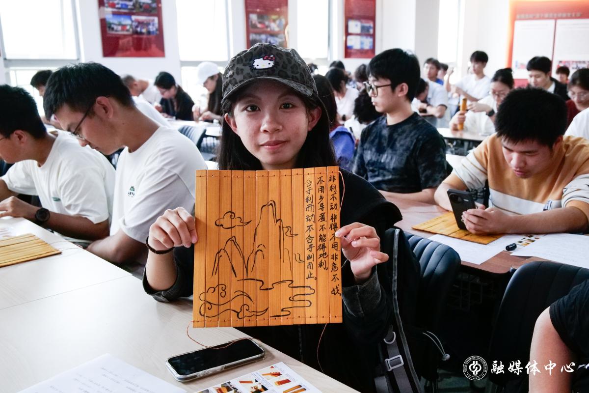 在“典籍视界”环节,师生共同观看了中央广播电视总台《典籍里的中国》节目《孙子兵法》片段。在“古籍新解”环节,人工智能学院超级计算方向师生联合党支部书记孙庆骁、中国科学院计算技术研究所工程师敦明,分别以“《孙子兵法》智慧在现代能源战略中的应用——从‘谋攻’与‘虚实’谈竞争格局”“宁德时代竞争经营策略分析”为题,分享了《孙子兵法》中的战略智慧,分析了现代能源竞争中的攻守策略与资源调度之道。在“古今对话”环节,人工智能学院2025级硕士研究生信明杰和2023级硕士研究生戴闻浩以“古今战略对话”为题表演了微情景剧,剧中春秋军事家孙武“穿越”至现代能源创新实验室,与中石大学子展开跨越时空的对话,通过解能源之需、论竞争之智、谈科研之实等场景,传达出“承兵法智慧,拓能源未来,科技护家国”的理念。在“科技随想”环节,人工智能学院2023级硕士研究生王鑫以“智竞全球:从世界机器人运动会看《孙子兵法》的现代竞技智慧”为题,分享了参加2025世界人形机器人运动会的经历,分析了《孙子兵法》的战略思维对机器人竞技的实战帮助。在“古技今用”环节,师生们亲身体验了“兵法竹简书”制作,以竹片为纸、麻绳为线还原了古代兵书的古朴形制。在“薪火相传”环节,师生们挑选《孙子兵法》佳句书写在自己制作的竹简书上,并点缀山水纹样、梅兰竹菊等传统意象,体验传统文化魅力。
