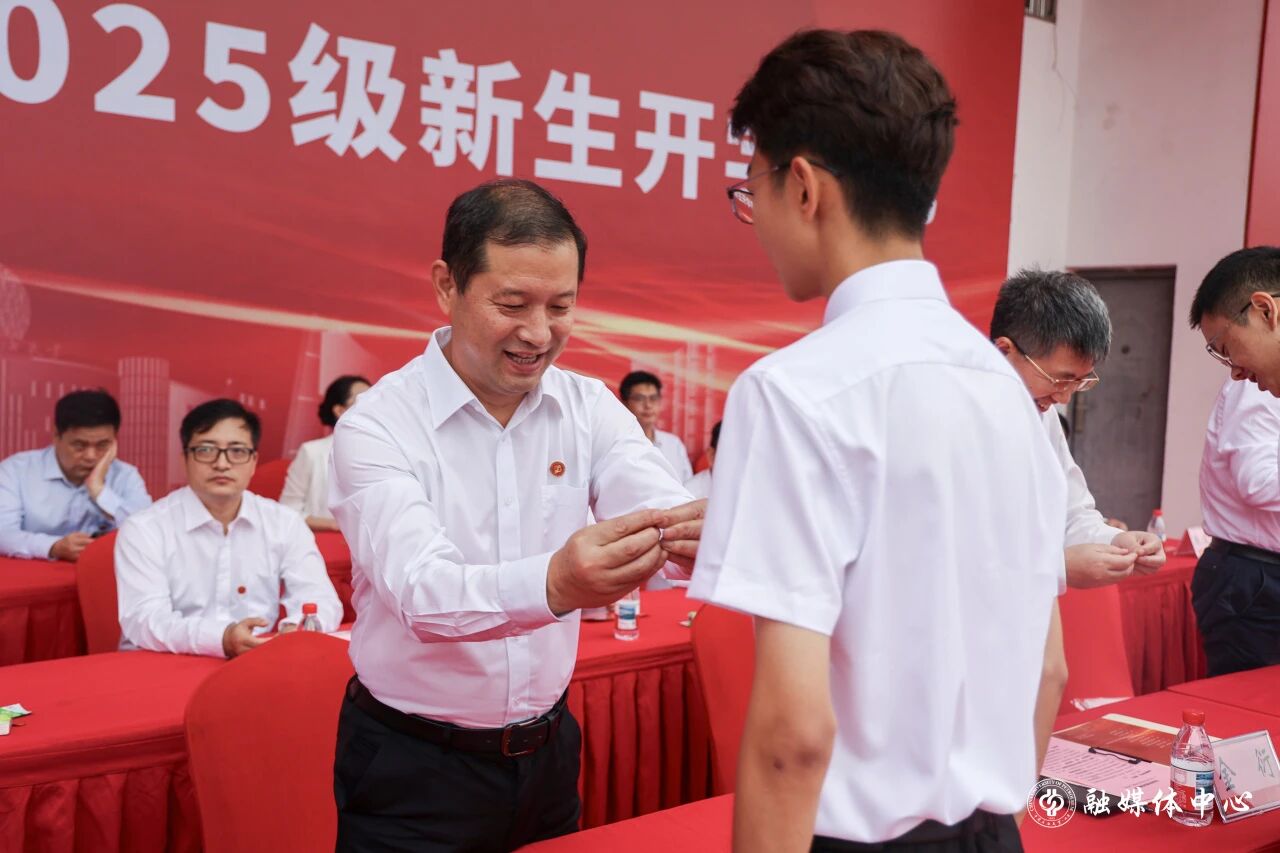 开学典礼设置了暖场表演、新生佩戴校徽、入学宣誓、向家长代表献花、向新生班主任代表颁发聘书等环节。洋溢着青春活力的歌曲串烧点燃了全体师生的热情与期待。适逢中国人民抗日战争暨世界反法西斯战争胜利80周年,在场师生同唱《我和我的祖国》。
