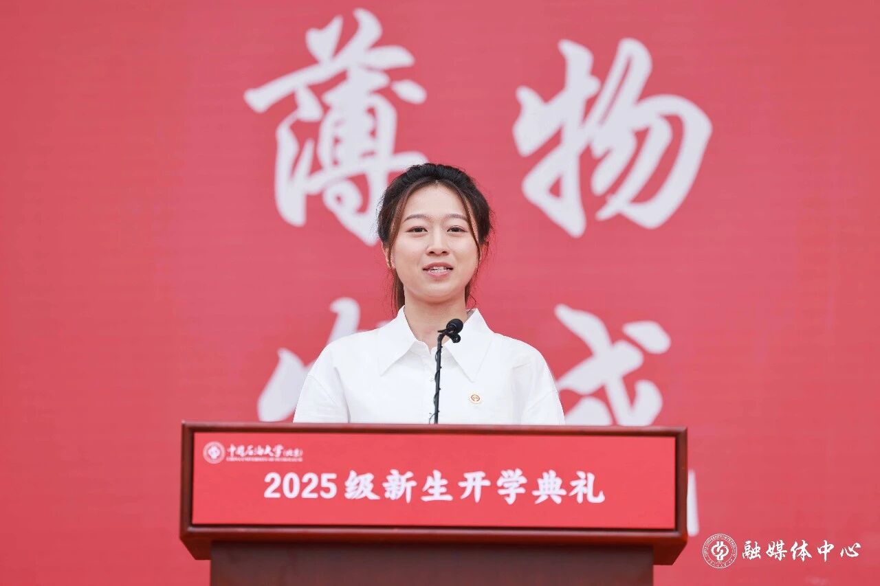新生代表、石油工程学院2025级本科生杨贺佳分享了与石油专业结缘的故事,表达了对大学生活的期待与畅想,号召全体新生在中石大勇敢追梦,让个人成长与学校荣光、国家发展同频共振。