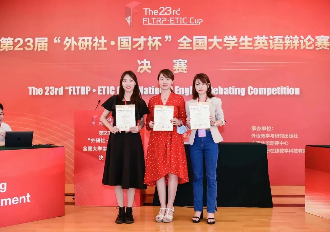 在多方共同努力下,连老师带领的英语辩论队捷报频传:2011年,演讲与辩论特色班成立;2012年,演讲辩论社团成立;2013年,邀请外籍专家加入团队;2016年,亚洲辩论学院赛冠军;2018年,第八届中国辩论学院赛特等奖;2020年,Asian Queer Open 2020国际赛最佳辩手;2022年,顺利入围第24届“外研社·国才杯”全国大学生英语辩论赛全国总决赛。