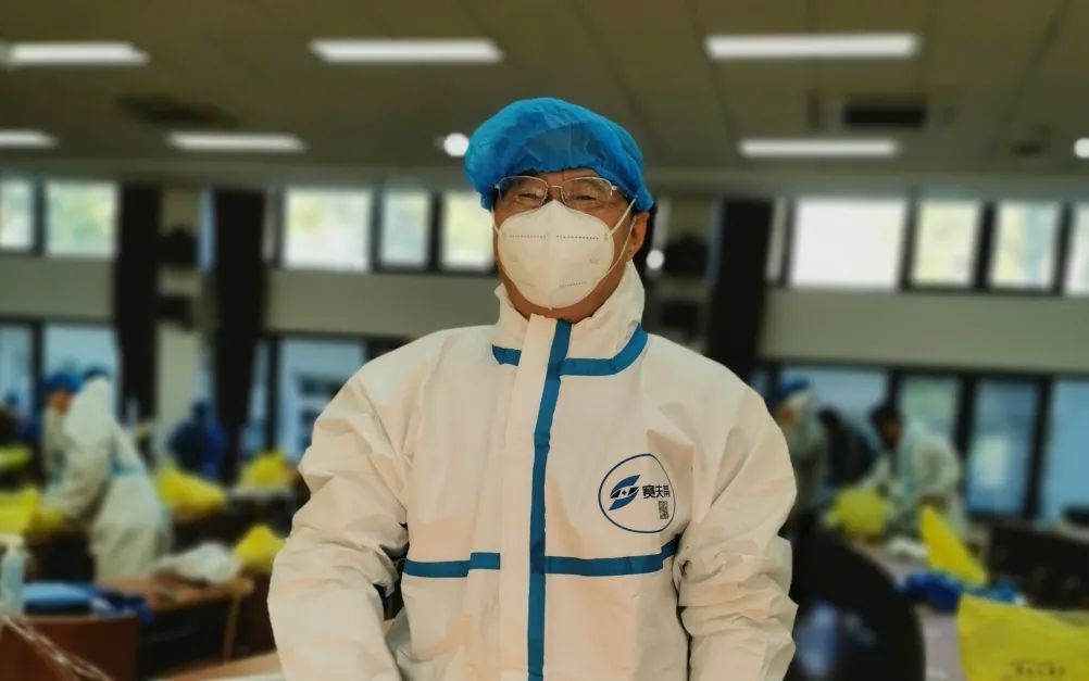 下午三点钟吃完午饭,张冠军给家人报平安。妻子心疼地唠叨:“50多了,高血压,还这么拼命。”张冠军连忙找补:“人家穆桂英53岁还挂帅征西呢,谁说俺男儿家不如女郎啊?!”他说,核酸采样小组里好多老师都是克服了家里这样那样的困难来的,有的家里孩子还小需要照料,有的刚刚失去了亲人,也有像他一样的“50后”“老一代”,“大家都在这个被认为‘高危’的工作中恪尽职守,我也为有幸参与到这样一个群体里而欣慰”。同学们也把张老师化身“大白”的事,在群里广而告之,表达着“师生同在、甘苦与共”的喜悦和感动。