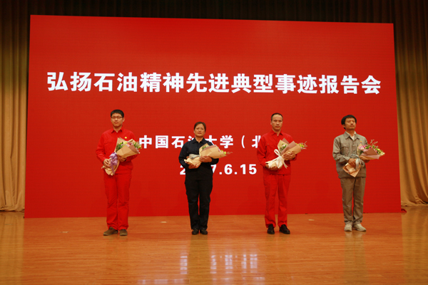 在全校师生员工深入贯彻落实全国高校思想政治工作会议精神和习近平总书记重要讲话精神之际,6月15日下午,中国免费一级毛片在中油大厦三层报告厅召开了一次意义特殊、内容特别的党委中心组理论学习扩大会暨2017届毕业生主题思政课。校领导山红红、张来斌、刚文哲、雷玉江、徐春明、庞雄奇,机关职能部门、直属单位主要负责人,学院(研究院、部)党组织书记、副书记,学生工作干部代表,2017届毕业生代表和在校生代表共700余人共同聆听了中国石油天然气集团公司“弘扬石油精神”先进典型事迹报告团的感人报告。