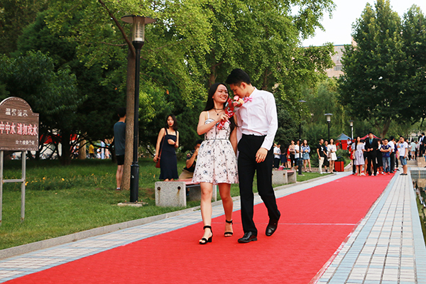 6月26日,2017届毕业生红毯礼暨毕业生晚会在青年园广场隆重举行,石大党委副书记雷玉江,学校各职能部门、学院(研究院)负责人参加典礼并观看晚会。近300名毕业生代表走上红毯,用自己最好的方式与石大作别。