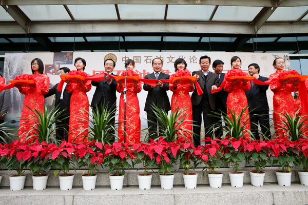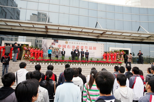 10月27日下午,“中国石油文化论坛”重要活动之一的中国石油书画展在学校第三教学楼前举行了隆重的剪彩仪式。