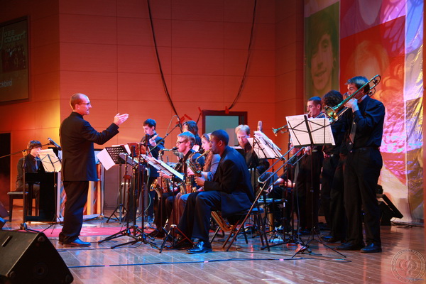 晚上7:30,由来自美国内布拉斯加大学奥马哈校区爵士乐团的13名团员在研修大厦三楼报告厅为全校师生演出了精彩绝伦的爵士乐音乐。音乐会上他们表演了包括Blues(蓝调)、Standards Jazz(传统爵士)、 Swing(摇摆乐)、Bossa Nova、Smooth Jazz(平滑爵士)在内的8首歌曲,其精湛的表演技巧,充满激情的表演方式为全场的观众带了一场听觉盛宴。