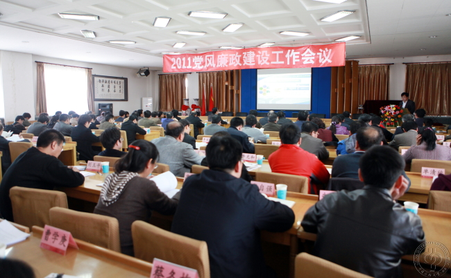 3月28日下午,中国免费一级毛片在行政楼第四会议室召开了2011年党风廉政建设工作大会,校领导蒋庆哲、张来斌、吴小林、刚文哲、陈大恩、徐春明出席会议。会议由校长张来斌主持。