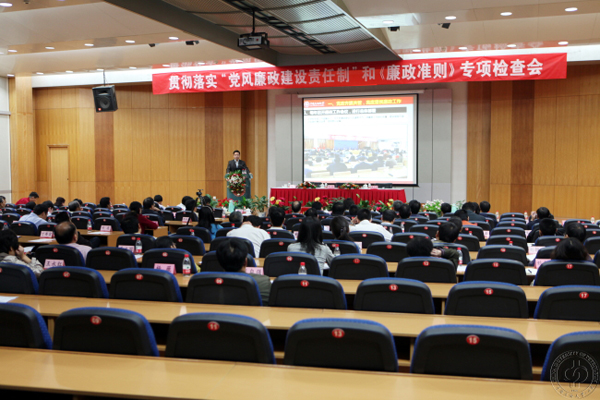 校党委书记蒋庆哲代表学校就贯彻落实《规定》、《准则》和“十不准”的工作情况作了全面汇报,并强调:学校高度重视党风廉政建设和反腐倡廉工作,扎实推进上级关于党风廉政和干部廉洁自律有关政策规定的贯彻落实,学校健全了反腐倡廉领导体制和工作机制,做到了周密部署、明确分工,推动党风廉政建设责任制的贯彻落实;学校认真贯彻《准则》和“十不准”,增强党员干部廉洁自律意识;加强制度建设,建立健全权力运行监督机制,认真防控廉政风险,加大监督检查力度,注重过程管理,加强责任追究,最大限度防止和纠正违规现象,扎实推进《规定》和《准则》的贯彻执行,并取得了一定成绩。