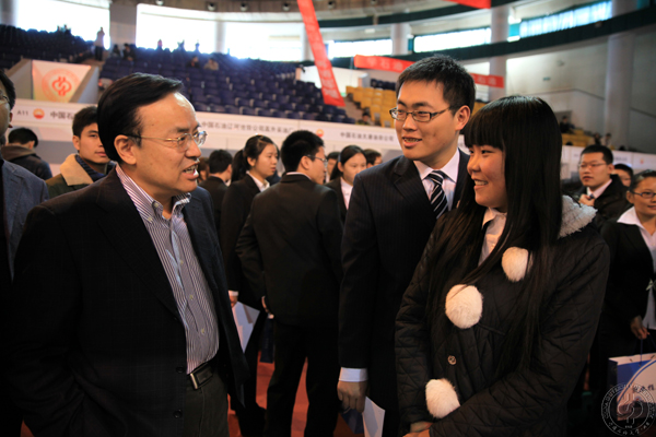 石大毕业生十分珍惜此次求职机会,3000余名毕业生参加了本次双选会,毕业生衣着整洁、精神饱满,招聘会现场秩序井然。双选会期间,校领导蒋庆哲、张来斌、刚文哲、雷玉江、吴小林、陈大恩等与用人单位进行了沟通和交流;部分职能部处和学院负责人以及负责就业工作的各学院学生工作干部都来到双选会现场,指导、关心学生就业。