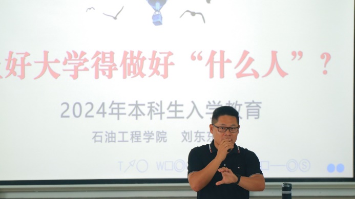 在本科入学教育第三讲中,石油工程学院石油工程专业负责人李俊键从专业简介、培养目标、课程体系、师资队伍、培养及就业、专业特色等方面进行专业介绍,并勉励新生要以中石大为荣、以所学专业为荣,以能源报国为己任,积极投身于国家能源行业。