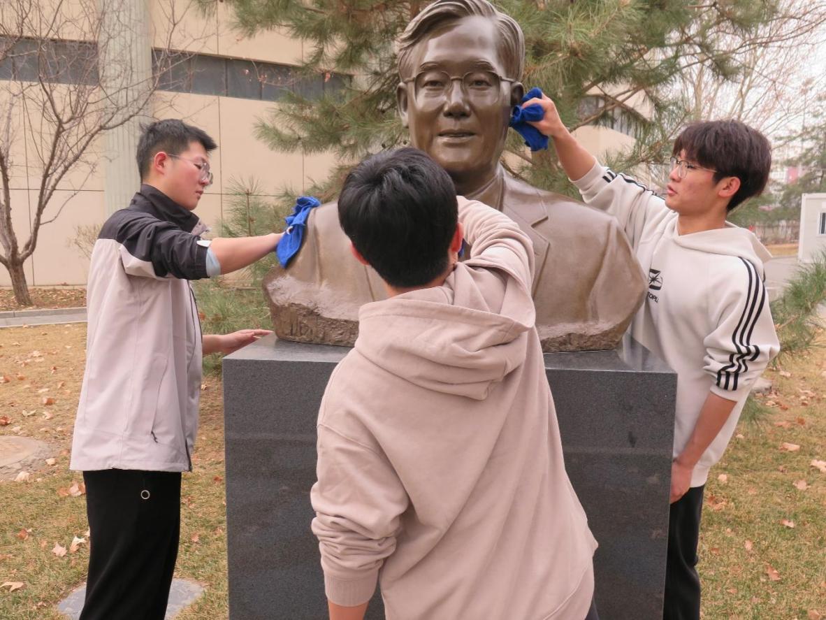 (“擦洗校园雕塑 建设美丽校园”志愿服务)