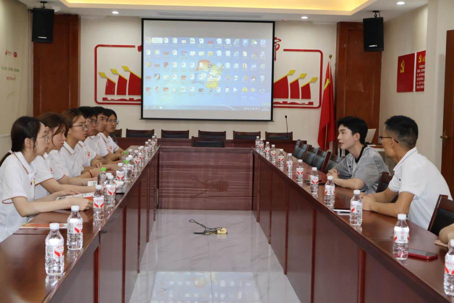 图为实践团成员与源宏米粉公司座谈常德米粉研发方向