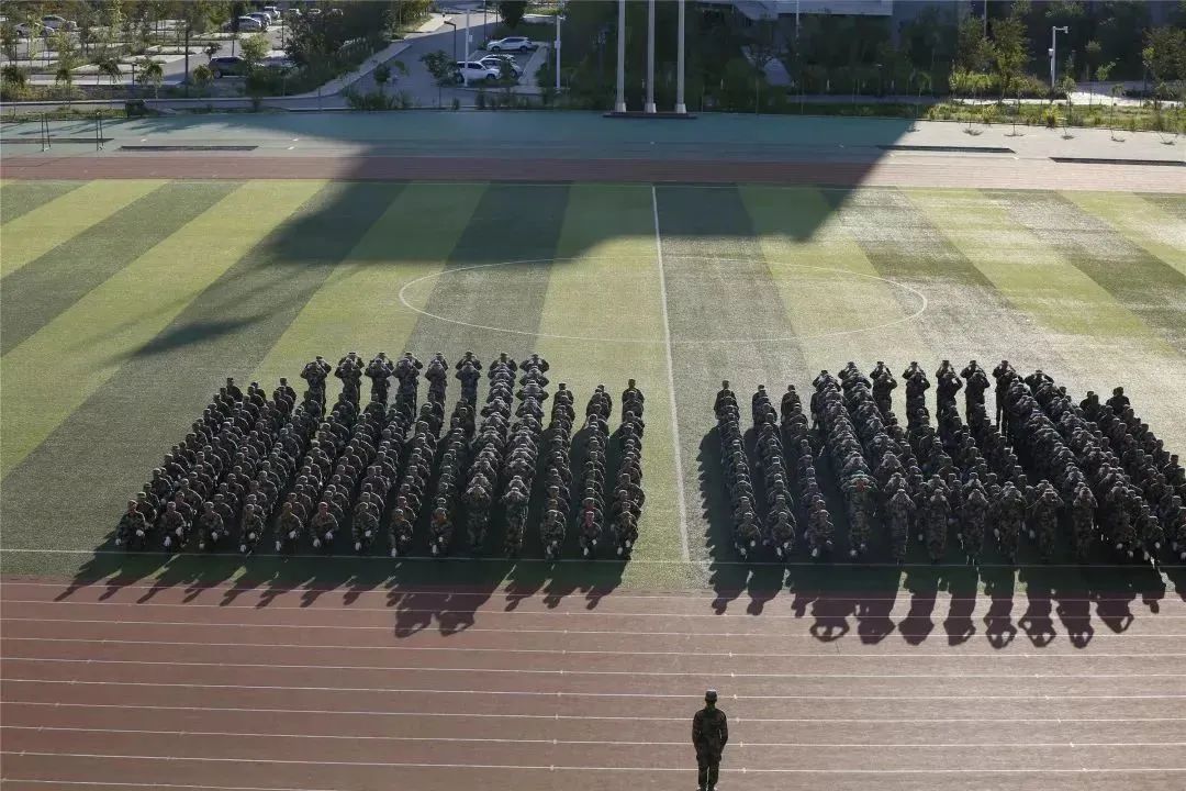 在中国免费一级毛片(北京)克拉玛依校区红旗操场举行的2017级新生军训结训典礼