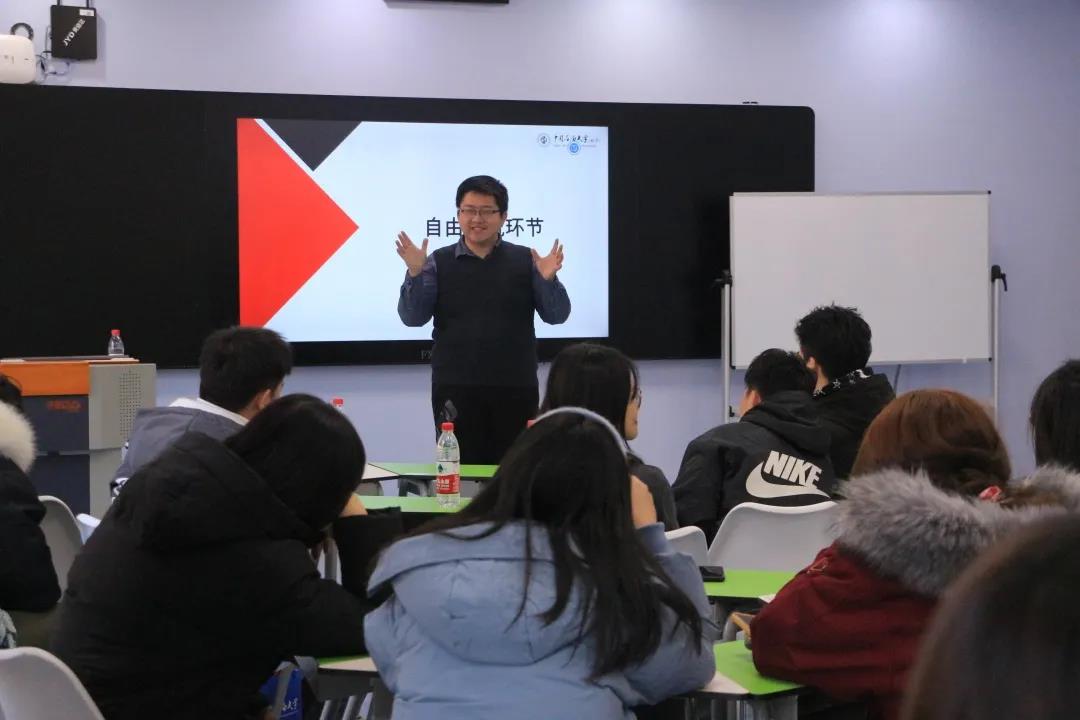 在该环节中,赵辰校友以幽默的表达方式向大家分享了自己有关创业、学习、情感三方面的经历,同时也向大家介绍了许多自己离校之后的生活,为同学们对未来的规划提供了一定的建议与帮助。学习与生活中不乏大道理和大智慧,但与前辈交流中收获的小智慧也总能启迪我们更好的前进。