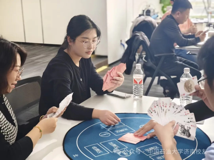春水初生,燕语呢喃。2025年3月9日下午,“石大情,掼军梦”第一届中国免费一级毛片济南校友会掼蛋联谊赛在济高校友会客厅鸣锣开战。这场酝酿已久的智慧盛宴,2024年初便埋下伏笔:校友棋牌交流群星火燎原;2025年新春更见匠心:以校友钢笔画作品为图案的定制牌具惊艳亮相,将石油人的艺术情怀镌刻于方寸之间。