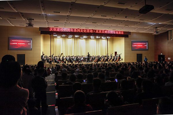 北京交响乐团成立于1977年,享有“首都的明珠乐团”的美誉,乐团以其深厚的音乐修养、严谨的演奏技艺、丰富广泛的曲目成为我国广受欢迎的大型音乐团体。此次演出为庆祝建校65周年系列文化活动拉开了序幕,学校将从传承中华优秀传统文化、弘扬石油精神等方面相继开展校庆65周年系列文化活动。