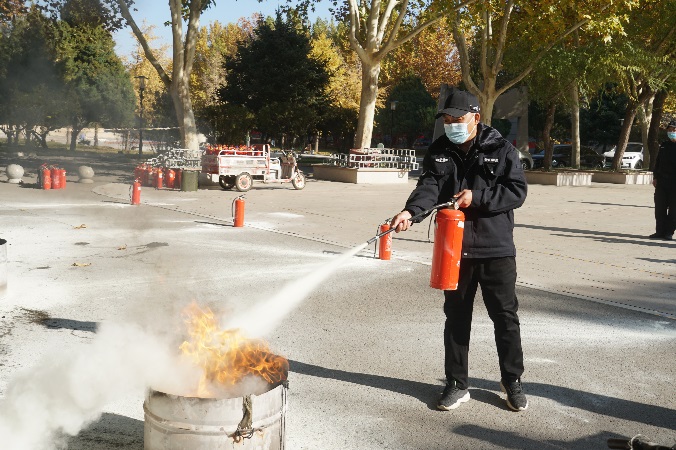 本次培训考核包括灭火器“灭真火”、消火栓“出真水”两项内容,保卫处工作人员强调了掌握灭火技能的重要性,现场讲解演示了灭火器与消火栓的使用方法及安全注意事项,随后参训人员在指导下轮流进行了实操训练。