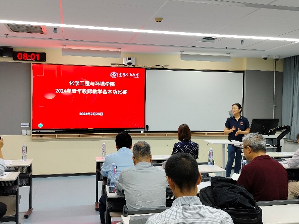 为进一步引导青年教师加强教学基本功训练,提高教学能力与水平,促进人才培养质量提升,9月28日,化学工程与环境学院在四教310举办了2024年度青年教师教学基本功比赛,学院领导班子成员,教学专家组成员、青年教师等近60人参加了活动。