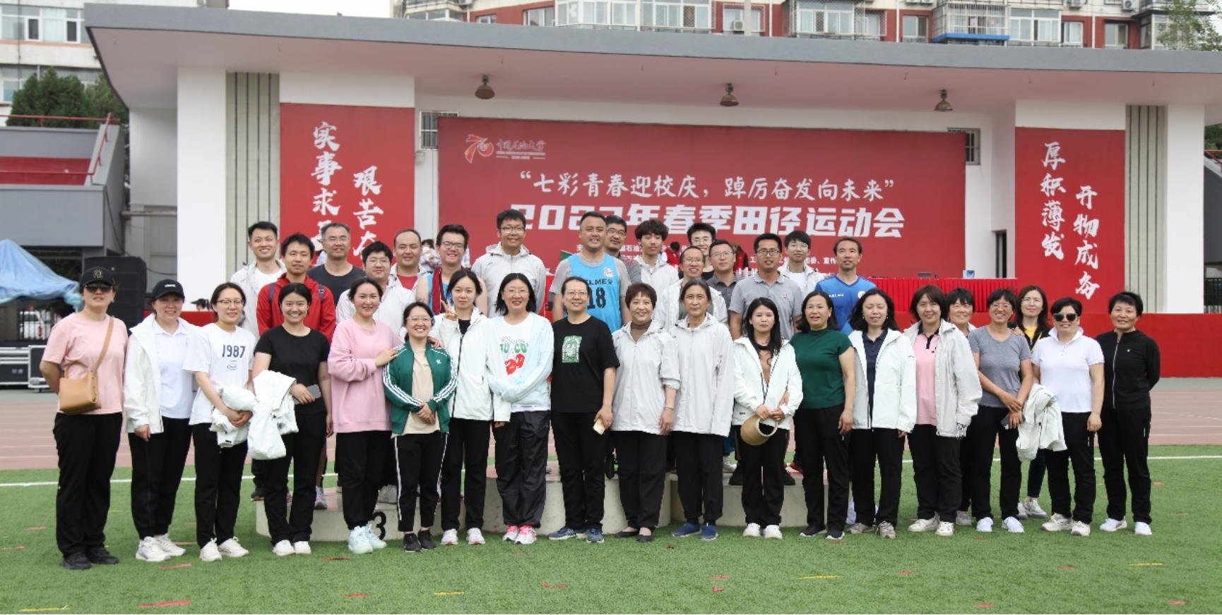 在2023年5月12日举办的春季田径运动会上,我院全体教职工秉持“齐心协力、共创佳绩”的精神,在运动会上团结协作、奋勇拼搏,最终取得总成绩第二名的好成绩。集体项目中,袋鼠跳、同心协力、毛毛虫竞速项目均获第1名,能量传输线、男子百米接力、蛟龙出海、彩虹飞舞项目均获第三名。个人项目男子1500米比赛中,王郁现和梁硕老师分获第2名和第6名。老师们在运动中锻炼了身体,放松了心情,培养了团队意识和大局意识。