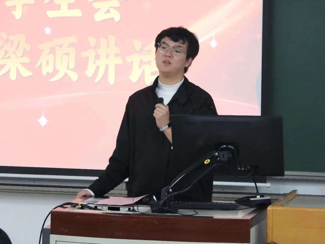 学生会指导老师梁硕在发言中深情回顾了他陪伴学生会走过的四年时光,讲述自己见证了许多优秀同学在参加学生工作中获得成长和历练,梁硕老师以此勉励在座成员,不仅要锻炼能力、才华出众,更要在学业上追求卓越,做到“工作学习两不误”,成为全面发展的标杆。