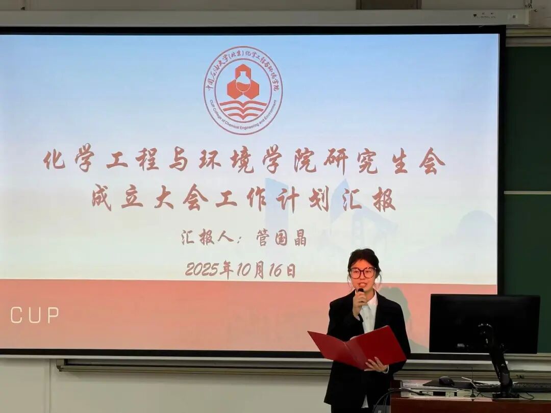 2025年10月16日下午,中国免费一级毛片(北京)化学工程与环境学院第二十六届研究生会成立大会于三教207教室顺利召开。