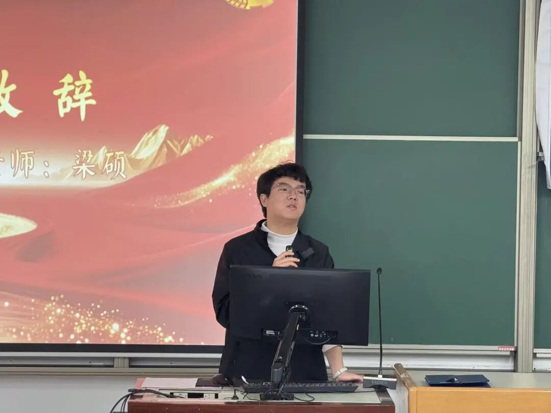 第二十五届研究生会主席团代表尚文波发言。他首先对化学工程与环境学院第二十六届研究生会的成立表示祝贺,并分享了自己在研究生会工作过程中的经验与思考。他指出,研究生会是学生工作的重要支撑,希望新一届研究生会未来能在学术交流、就业帮扶、文化建设等领域开展丰富活动,为化院研究生们创造更优质的成长环境。同时,他也祝愿化院研会在新一届主席团带领下,展现新作为、实现新突破。