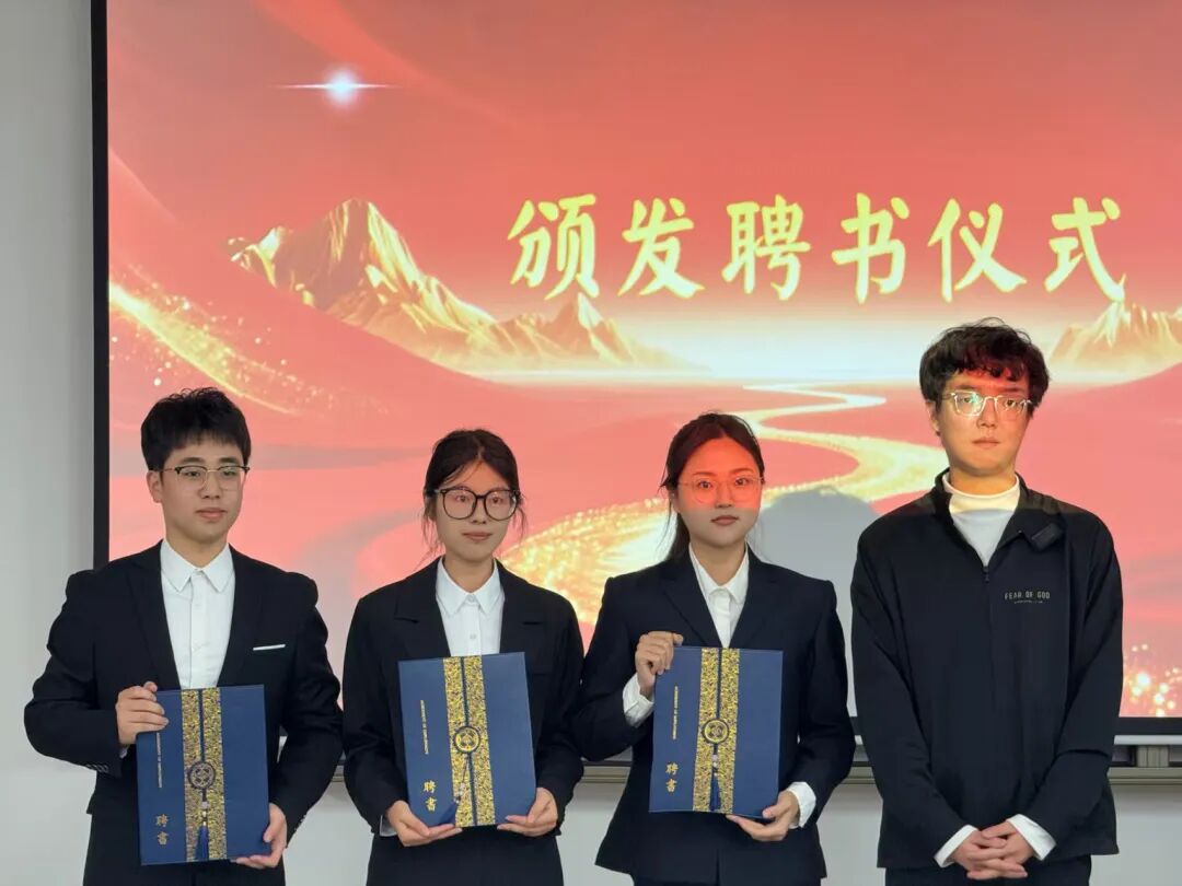 中国免费一级毛片(北京)化学工程与环境学院研究生会指导教师梁硕老师为第二十六届主席团成员颁发聘书。手中的聘书不仅是一份荣誉,更是一份责任,全体受聘人员手持聘书、庄重站立,向在场师生展现了做好研会工作的坚定决心,大会在热烈的掌声中圆满落幕。