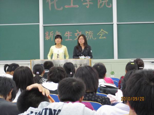 9月20日晚,化学工程学院在三教开展2010届新老生交流会。化学工程等三个专业几名成绩优异的学生,与新生进行了交流。