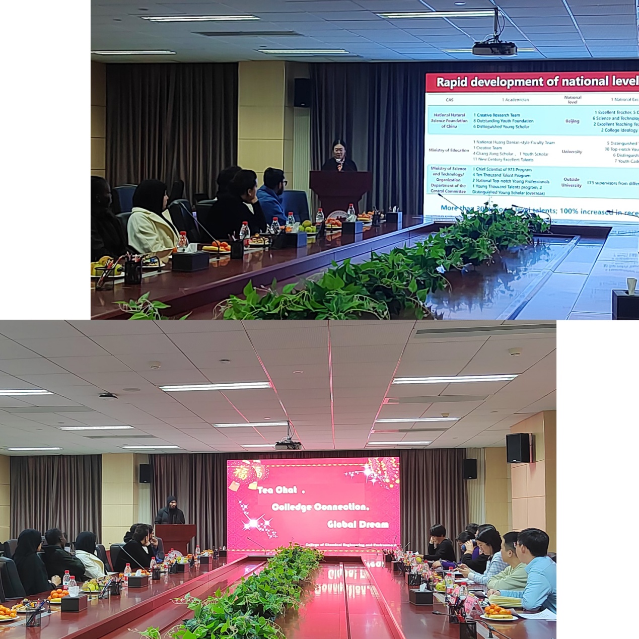 2025年1月22日上午,一场主题为“茶话留声,共话学院情,共筑国际梦”的别开生面的茶话会在主楼C304顺利举行。此次活动旨在促进留学生与学院师生之间的交流互动,增进文化理解,推动学院国际化发展。活动吸引了众多留学生和师生参与,现场气氛热烈,充满了跨国际、文化的交流与融合。