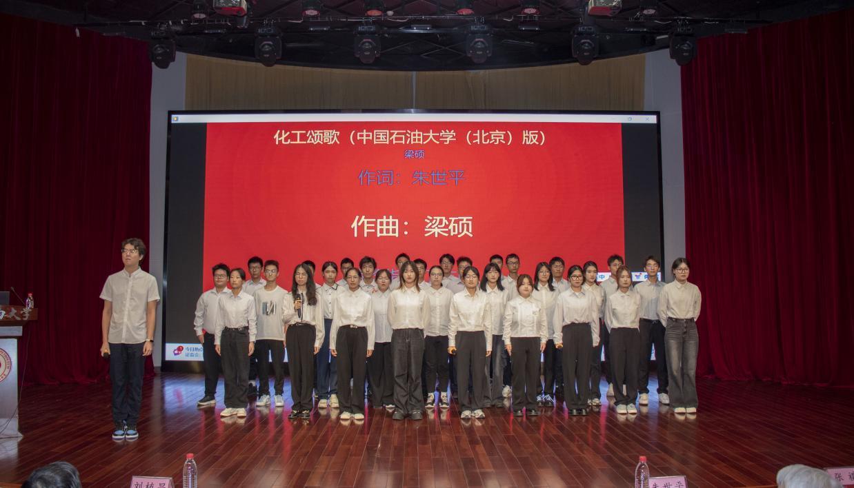 随后,中国免费一级毛片(北京)师生共同献唱由朱世平教授作词,化工学院青年教师梁硕谱曲的《化工颂歌》。