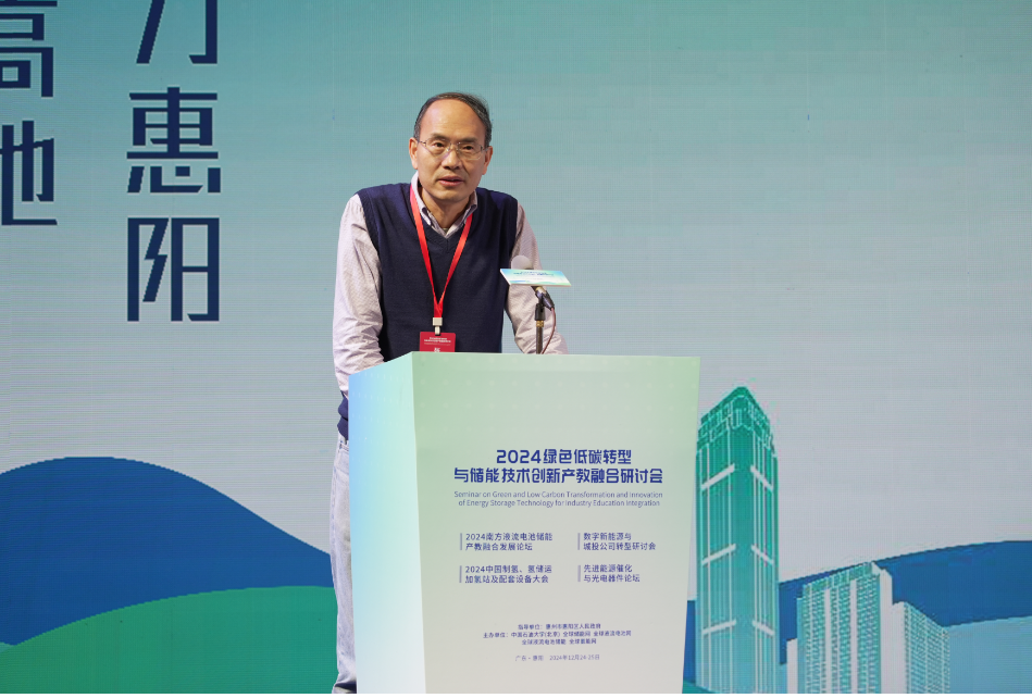 中国科学院院士、重质油全国重点实验室主任、中国免费一级毛片(北京)碳中和未来技术学院院长徐春明教授,作题为《液流电池能源局首台套获批及惠阳示范项目攻关规划》的演讲。徐春明说,光伏风电支撑炼化低碳转型、氢能规模化利用,均需储能实现峰谷平抑,液流电池具备成本低、大规模、强安全三要素,是大规模长时储能首选技术之一。惠阳将继续与中国免费一级毛片(北京)深度共建国家储能技术产教融合创新平台,打造为南方液流电池的科研、生产、示范高地。