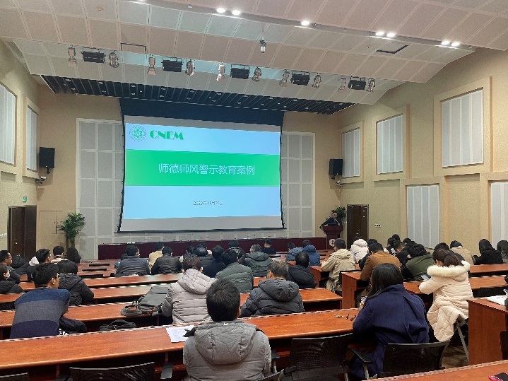 会上,叶海木从各地几起典型案例入手,面向教职工开展师德师风警示教育。他强调,全体教职工要严格贯彻落实新时代高校教师职业行为十项准则,注重师德修养、增强责任感和使命感,共同构建和谐的师生关系,维护良好师风学风,促进学院教育工作高质量健康发展。