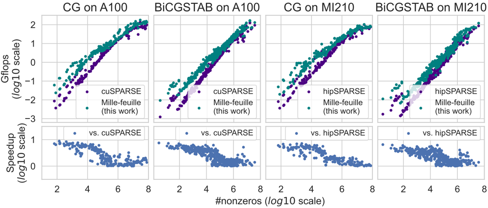 一、Mille-feuille与基准实现的对比(cuSPARSE/hipSPARSE)