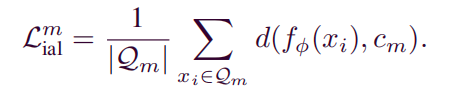 上方类内聚集损失的计算方法是对查询集中每个样本的特征表示与其原型之间的距离求平均,此平均值反映了类内样本特征与其原型之间的紧密程度。