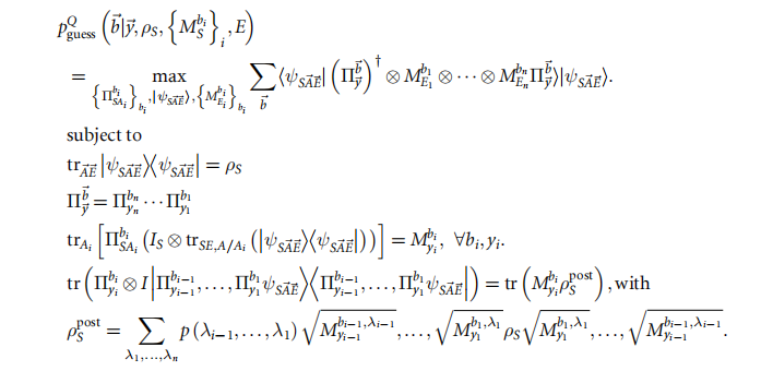 组成的复合系统的投影测量,定义了监听者Eve的量子最大猜测概率。