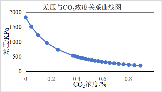 图5为喷嘴流量计差压与CO2浓度的关系曲线图,由图可知:差压与CO2浓度呈四次函数关系;随着CO2浓度的增加,差压逐渐减小;当CO2浓度小于37%时,随着CO2浓度的增加,差压减小速度较快;当CO2浓度大于37%时,随着CO2浓度的增加,差压减小速度较慢,其中CO2浓度在37%~60%时,差压减小速度最慢,随后差压减小速度稍有增加。由此可知,CO2浓度较低时对喷嘴差压影响较大。