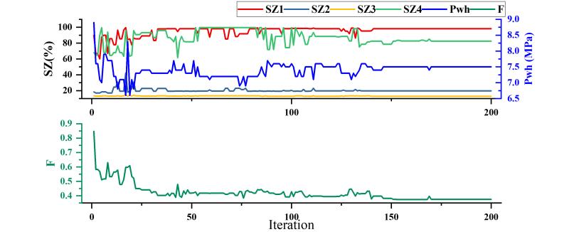 ,对应的开度方案下,单层段最大配注误差为10.09%,四层段累计配注误差为10.74%,最优方案对应的适应度