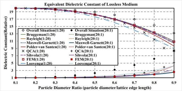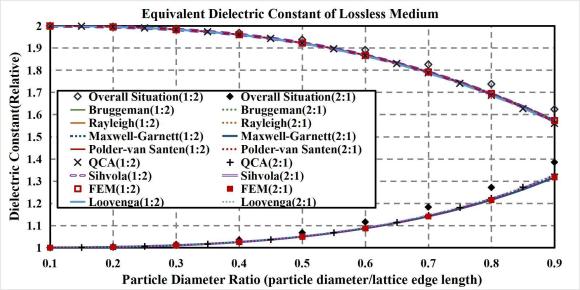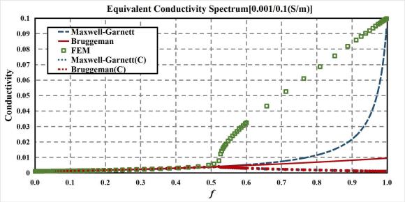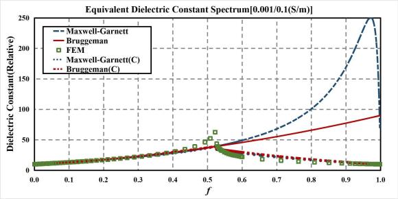 我们将首先回顾介质导电和极化基本理论背景,以及基于电磁场理论的宏观电性计算方法。接下来,本文将全面回顾现有的常用混合电性计算的相关方法及其改进,并将其与数值计算方法的结果进行比较。通过对比发现,Sihvola获得的电导率谱在高频带几乎与Bruggeman的结果一致,但弛豫频率位于较高的频率范围内,介电常数的估计并不理想。