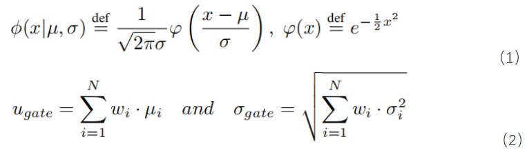a. µ和σ: Max运算后通常形成非高斯分布。所以我们用高斯混合模型(Gaussian Mixture Model,GMM)建立模型最大值的概率密度函数(Probability Density Function,PDF)。首先利用蒙特卡罗模拟方法对非高斯分布进行建模,然后利用GMM进行拟合。换句话说,它可以分解成基本函数单元(Radial Basis Function,RBF)。进一步,我们从模型的属性中提取每个拟合RBF的µ和σ。因此,我们将非高斯分布作为公式(1)的线性组合来处理,如图3所示。最后,通过公式(2)提取到达时间µ和σ: