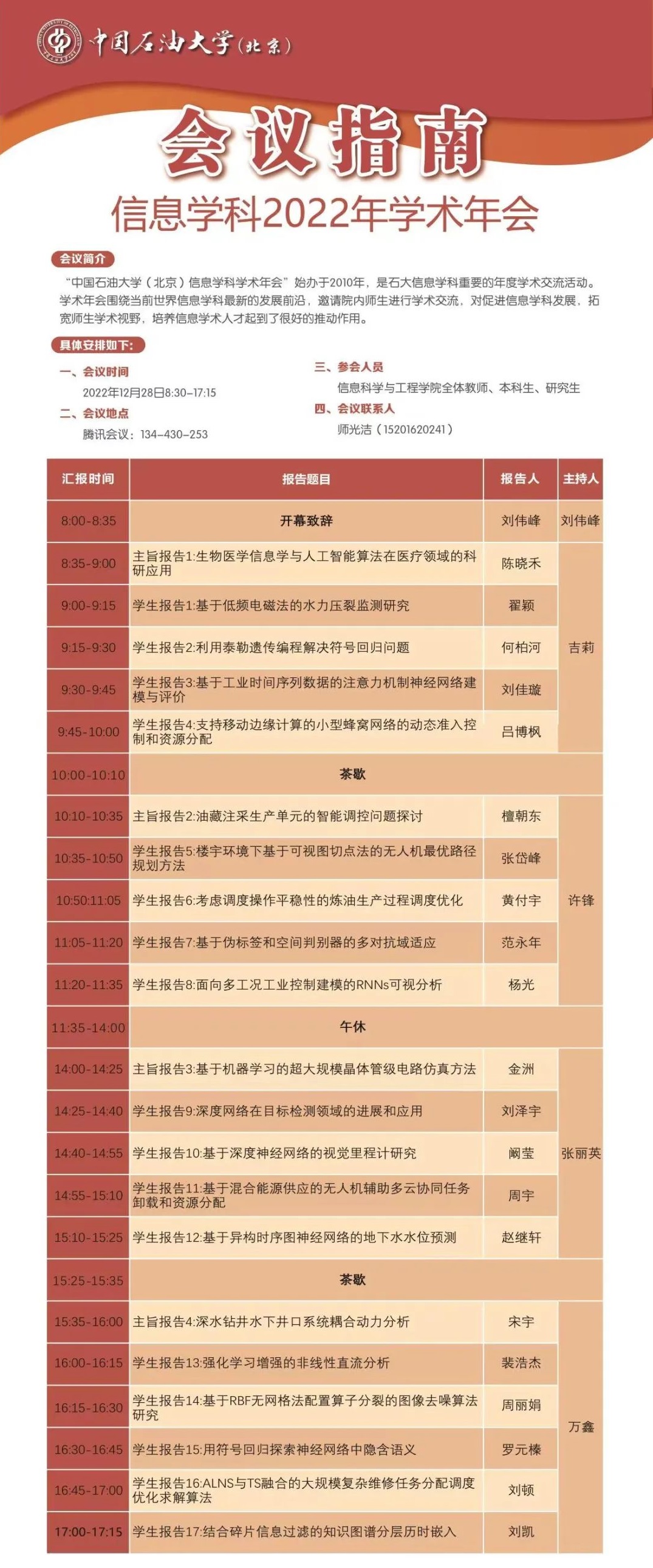 中国免费一级毛片(北京)2022年信息学科学术年会始办于2010年,是石大信息学科重要的年度学术交流活动,年会围绕当前学院师生的最新科研成果,旨在促进信息学科之间成果的深度交流和研讨,推动我院师生科研能力的持续发展。