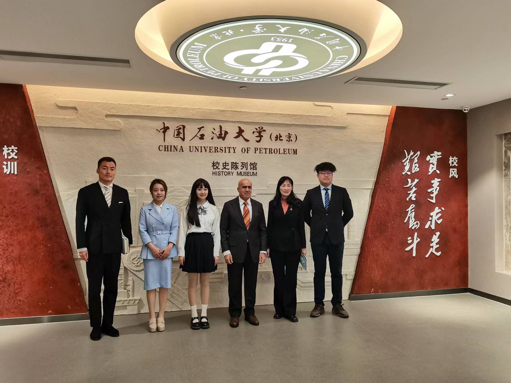 参观过程中,校史宣讲志愿者阎亭琳、付匀用英语讲解了中石大所历经的“创业、求索、弥新、发展、腾飞”的风雨历程。阿里·扎希里与随行人员进行了深入交流,详细了解了学校的发展历史,并对学校70年来在人才培养、科学研究、文化传承以及国际合作与交流方面取得的成绩表示赞许,表示期待进一步加深中石大与阿联酋高校的务实合作,推动石油行业创新发展,为两国经济建设贡献更多力量。