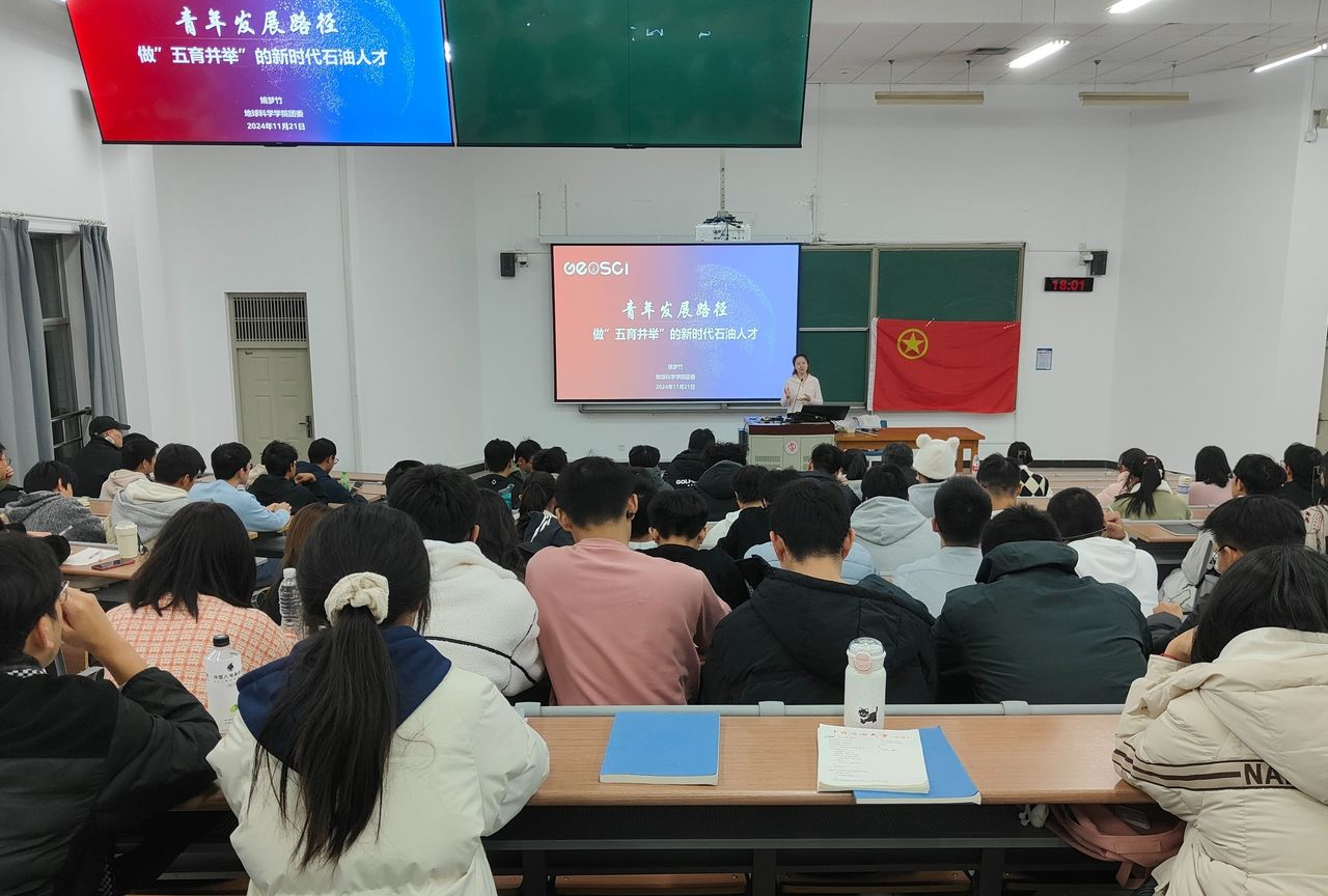 姚梦竹就青年如何做”五育并举”的新时代石油人才的发展路径展开探讨,明确了新时代团组织应该加强组织建设,守正创新建立新型模式;深化制度建设,以铁的纪律确保工作规范。广大青年应该“五育并举”全面提升素质:“德”--以思政教育为指向标;“智”--以学风建设为奠基石;“体”--以强健体魄为动力源;“美”--以美育熏陶为风向标;“劳”--以志愿实践为品牌项。