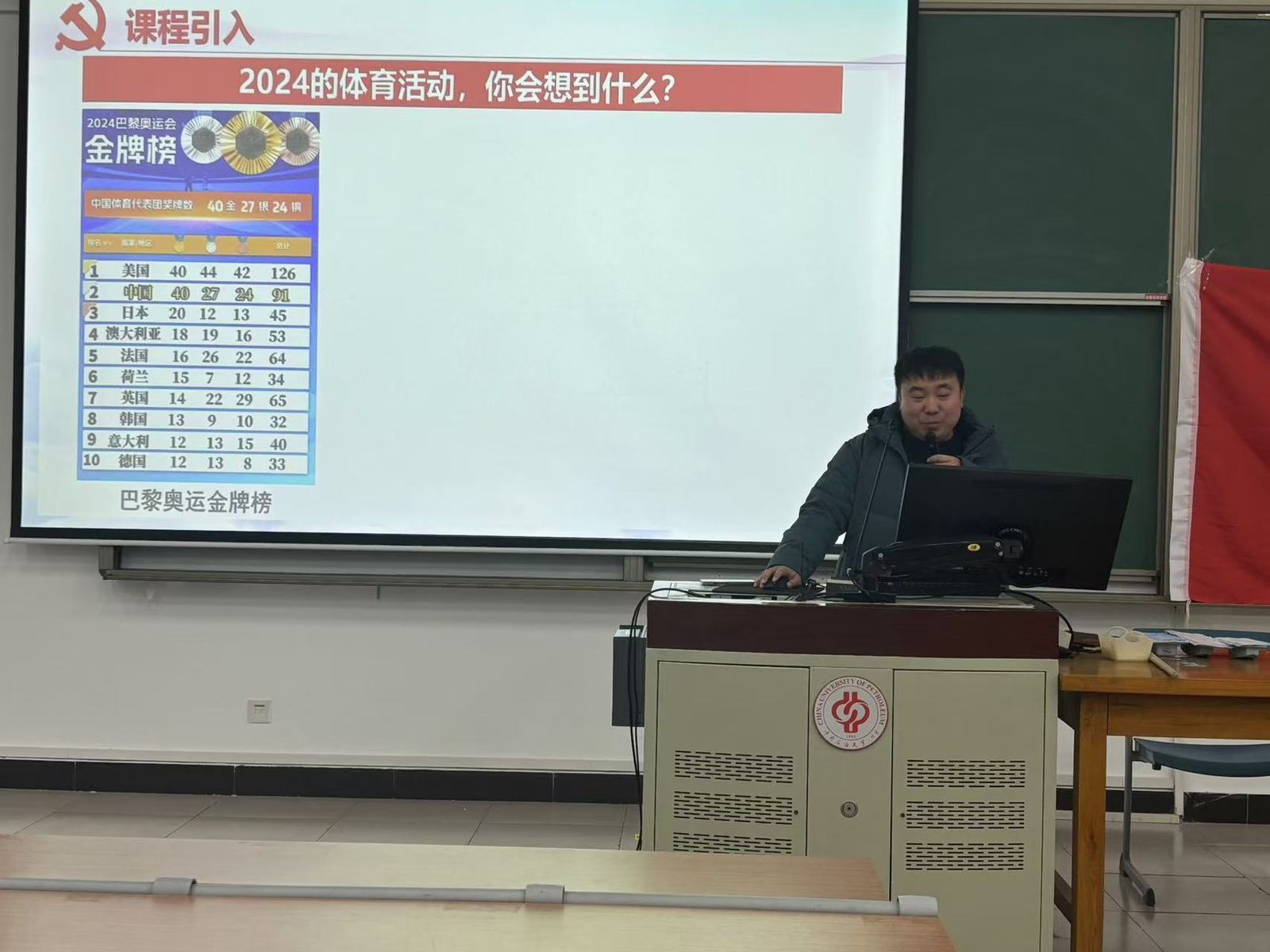 刘俊鑫通过1910年7月17日的《申报》刊登出的“奥运三问”,结合中国近代史发展、体育外交故事、2008年北京奥运会、2022年北京冬奥会、2024年巴黎奥运会等话题,为大家讲述中国体育事业发展史上的重要时间节点及辉煌时刻,生动展现了中国体育的崛起之路,引导同学们自觉传承弘扬中华体育精神,坚定文化自信。