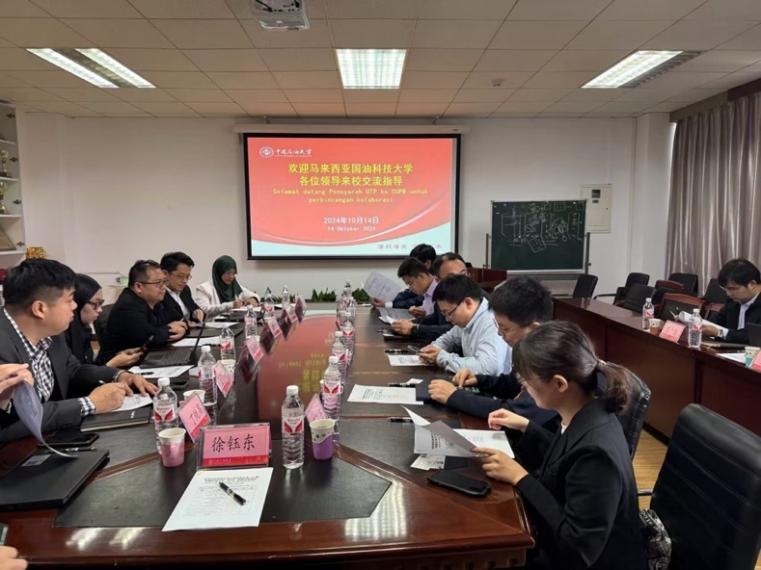 10月14日上午,国油大学新兴数字技术研究院院长Izzatdin教授和学生发展中心高级主管Mansor教授一行到访中国免费一级毛片地球物理学院。学院党委书记王兵、副院长唐跟阳、物探系、测井系和固体地球物理系主任及部分教师代表参与了双方的座谈交流,交流会由学院党委书记王兵主持。